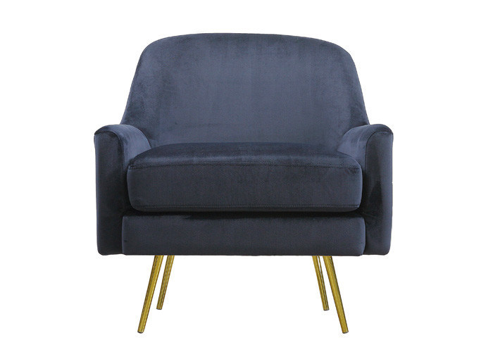 Fabric arm chair velvet cover high density foam padded seat cushion removable metallic legs deep blue